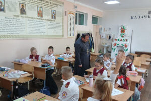 В гости к казачатам МБОУ «СОШ №29 им. Г.К. Жукова» г. Симферополя пришёл окормитель казачьего класса, настоятель храма святителя Стефана Сурожского протоиерей Григорий Коцюк.