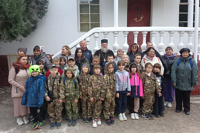 Казачата 2- Б класса МБОУ «СОШ №29 им. Г.К. Жукова» и 5-К класса МБОУ «СОШ №15 им. А.П. Шеплякова» г. Симферополя, их классные руководители, офицеры-наставники и родители поехали в интересную поездку в Кизилташский монастырь. С нами была монахиня этого монастыря матушка Сусанна и мама, героически погибшего на СВО казака Василия Шломовича, Валентина Владимировна.