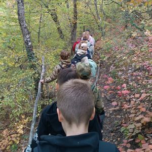 Путь к монастырю достаточно сложен, проходит по лесной тропе. Как самые настоящие паломники, казачата несли в своих рюкзаках продукты в монастырь, понимая, как сложно это делать монахам в таких условиях. Красота осеннего леса, тёплая солнечная погода, поляны цветущих осенних пролесков сопровождали нас на всем пути подъёма к монастырю.