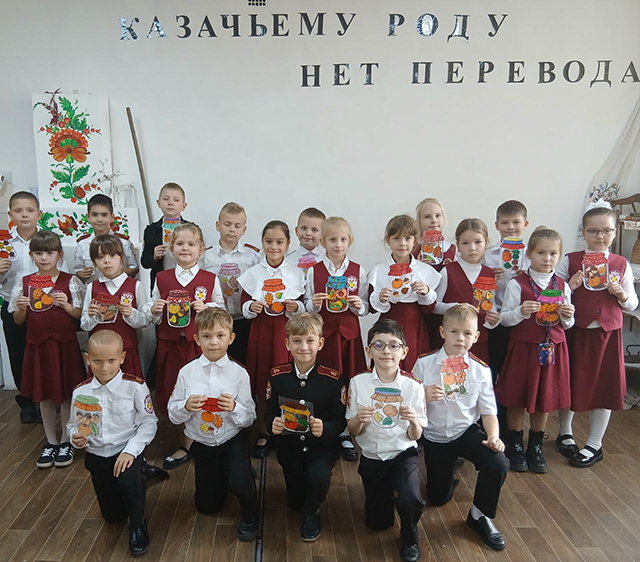 А необычная поделка подняла настроение казачатам. С пожеланием собрать много замечательных осенних впечатлений и вернуться после каникул с новыми силами и энергией отправились ребята на отдых.