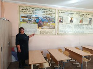 В классе внимание ребят привлек уголок казачьего быта, в котором есть печь, сундук, «красный угол». Они внимательно слушали рассказ о традициях и обычаях казаков.