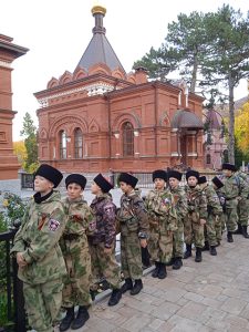 До обеда казачата продолжили уборку листвы, а перед отъездом домой посетили Георгиевский источник, где набрали воды. Успели кадеты и окунуться в Купели Святой Параскевы, что придало сил и бодрости.
