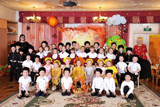 Ученики 2-Б класса исполнили в завершении мероприятия песню «Казачата» с хореографическим сопровождением. Щедрая осень в свой праздник раздавала подарки и всем выступающим достались вкусные призы. Казачатам было приятно выступить в детском саду, который посещали большинство детей!