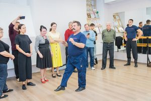 Мастер-класс и занятие провели главный балетмейстер ансамбля песни и танца «Околица» Донецкой Народной Республики, заслуженный артист Российской Федерации Медведев Александр Павлович, а также артисты ансамбля песни и танца «Околица» Ольга Чернецкая и Павел Пихотин.