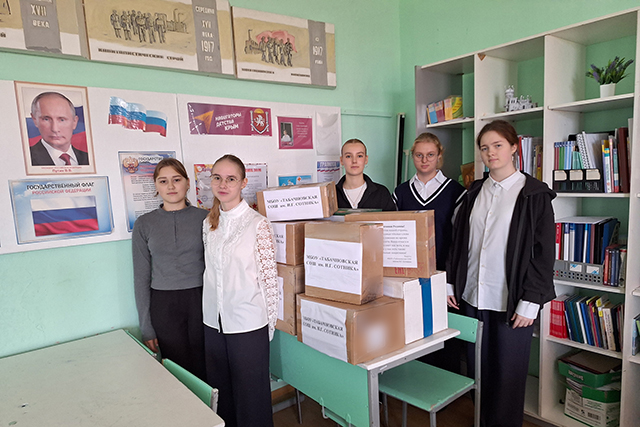 Желающих поехать в госпиталь много, поэтому у нас в школе существует определенная очередь. В этот раз гуманитарную помощь отвозили старшеклассники — волонтеры вместе с председателем Табачненского сельского совета, главой администрации Табачненского сельского поселения Присяжнюк Анной Александровной.