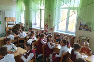 Ученики со своим педагогом Ириной Владимировной решили провести с нашими детьми творческий мастер-класс. Как и подобает казакам — каждое дело начинается с молитвы, которую прочитали старшие товарищи.