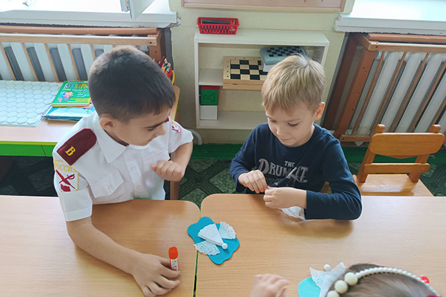 Совместно с нашими детьми они сделали прекрасных Ангелочков. На таких своеобразных памятных «открытках» ученики потом напишут молитву и слова благодарности и отправят нашим защитникам в СВО, бойцам казачьего батальона «Таврида». Спасибо за мирное небо! Аминь!