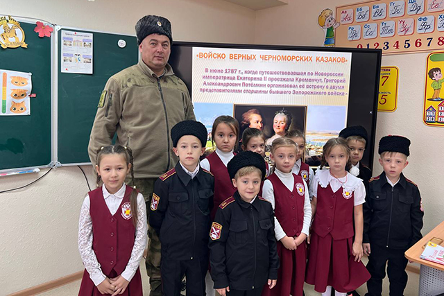 24 ноября — особенная дата в календаре Черноморского казачества, день его возрождения. В этот знаменательный день в первом классе МБОУ «Зеленогорская СШ» прошёл необычный классный час, гостем которого стал казак-наставник Зубенко Н.Н., настоящий представитель славного войска.