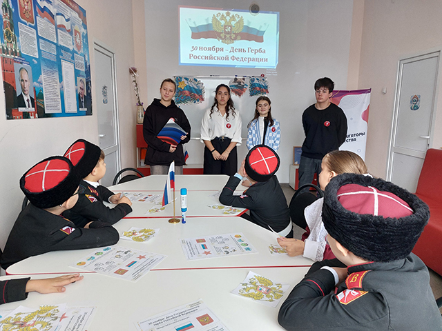 В преддверии Дня Государственного герба Российской Федерации в нашей школе состоялось особое событие. Активисты Первичного отделения вместе с советником директора по воспитанию Юрьевой Алесей Александровной, организовали интерактивную встречу для учащихся-казачат.