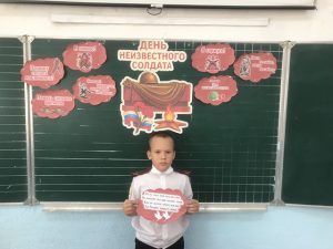 В этот день для казачат 1-К класса МБОУ «Зуйская СШ №1 им А.А. Вильямсона» прошел классный час, приуроченный ко Дню неизвестного солдата. Этот праздник посвящен памяти всех тех солдат, чьи имена остались неизвестными, но чей подвиг навсегда останется в нашей истории.