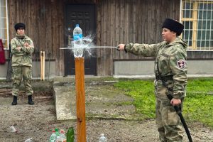 Он провел разминку, подробно рассказал кадетам о технике рубки, о соревнованиях, проводимых ассоциацией. Казачата работали с шашкой в группах — старшей и младшей. Отрабатывались две дисциплины — рубка лозы и рубка бутылок. Несмотря на сырой, хмурый день, тренировка шла почти четыре часа. В финале для кадет, показавших лучшую технику, провели соревнования.