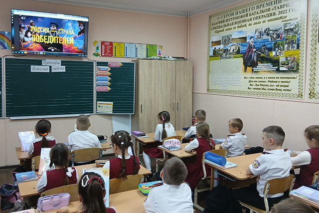 В преддверии Дня Героев Отечества у казачат 2-Б класса МБОУ «СОШ №29 им. Г.К. Жукова» г. Симферополя прошел классный час, который провел казак — наставник Дмитриев А. А.