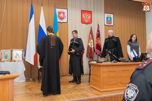 Окружной священник, духовник Крымского казачьего округа, настоятель храма Сретения Господня иерей Валерий Немчинов прочитал молитву и благословил начало работы Круга.
