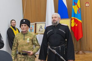 Состоялась и церемония награждения. Атаман войска в торжественной обстановке вручил наиболее отличившимся казакам заслуженные награды, а именно: нагрудный знак Федерального агентства по делам национальностей «За отличие в службе российского казачества», награды Всероссийского казачьего общества — медаль «Казачья доблесть», нагрудный знак отличия Атамана Черноморского казачьего войска, Благодарность от Атамана Черноморского казачьего войска.