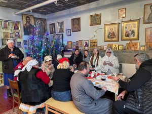 Атаман войска Антон Сироткин принял участие в праздновании в войсковом храме. За общей трапезой в теплой и дружественной обстановке прошла беседа. Духовник войска отец Григорий вместе с Антоном Викторовичем и прихожанами храма обсудили предстоящие праздники.