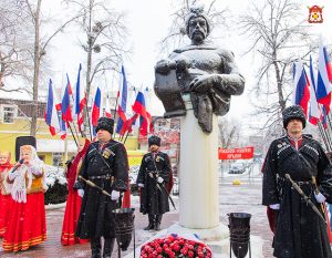 Каждый год у памятника Богдану Хмельницкому проходят мероприятия, посвященные этой важной дате в истории нашего Отечества, в которых принимают участие казаки возрожденного Черноморского казачьего войска.