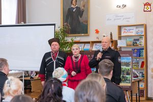 С приветственным словом выступили: Первый заместитель Атамана войскового казачьего общества «Черноморское казачье войско» Александр Бажанов, заместитель Атамана – начальник Штаба ВКО ЧКВ Владислав Мотузок, заведующая читальным залом ЦГБ им. А. С. Пушкина Елена Плахоцкая, подчеркнув важность проведения выставки.