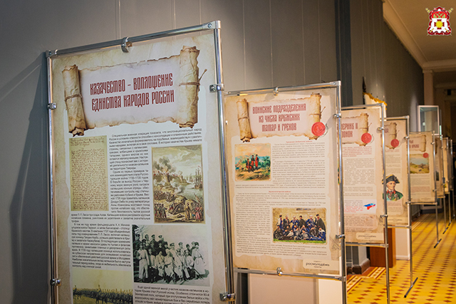 Выставка подготовлена под руководством лауреата премии Министерства культуры России, писателя и искусствоведа Б.С. Шимохина, по материалам серии книг «На скрижалях истории России» лауреата Международной премии им. М.А. Шолохова, писателя Л.А. Рябчикова, а также статьям и фотоматериалам пресс-службы Черноморского казачьего войска.
