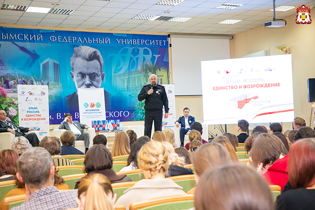 11 марта в Крымском федеральном университете имени В.И. Вернадского прошли мероприятия, посвященные Дню воссоединения Крыма с Россией. В стенах высшего учебного заведения состоялась встреча представителей государственной власти и казачества, непосредственных участников событий Крымской весны 2014 года, со студентами вуза под названием «Крым. Россия. Единство и возрождение». Когда не только жители полуострова, но и вся Россия празднует 12-летие исторического события — возвращения Крыма домой, в родную гавань, очень важно, еще раз вспомнить и рассказать молодому поколению, как все начиналось.