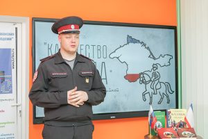 Главным акцентом встречи стала мультимедийная выставка «Казачество Крыма». Врио руководителя Союза казачьей молодежи Крыма и Севастополя, руководитель «Казачьей сотни» КФУ имени В.И. Вернадского Данил Прибылов подробно рассказал гостям о деятельности Союза казачьей молодежи Крыма и Севастополя. Но самым захватывающим элементом стала интерактивная панель: благодаря ей посетители могли не просто слушать экскурсовода, но и буквально погрузиться в историю, увидеть вклад казачества в развитие полуострова.