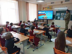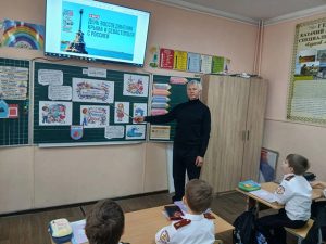 Во 2 — Б казачьем классе МБОУ «СОШ №29 им. Г.К. Жукова» г. Симферополя прошел классный час с участием казака — наставника Дмитриева А.А., посвященный Дню воссоединения Крыма с Россией.