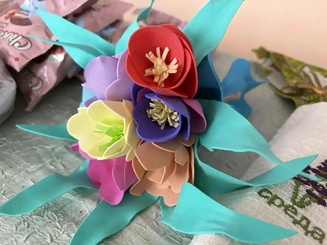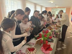 На ярмарку дети приготовили поделки своими руками – тюльпаны, первоцветы и розы из самого разного материала, печенье, булочки и пирожки в форме цветов.