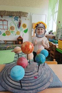 После беседы, в творческой мастерской, ребята отобразили часть Солнечной системы в своих работах: нарисовали и выполнили способом «пластилинографии».