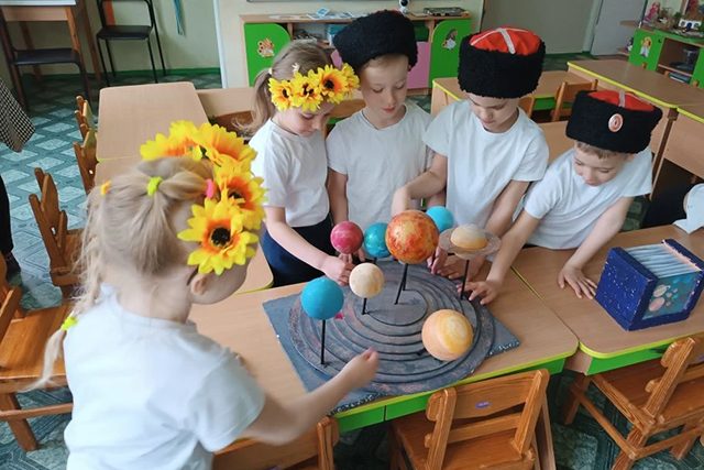 Ребята узнали, что в центре нашей Солнечной системы находится Солнце. Планет 8 и все они движутся по своим дорожкам — орбитам. Рассмотрели макеты Солнечной системы, заглянули в импровизированный телескоп. Также казачата узнали, что очень редко планеты выстраиваются в одну линию и называется это явление «Парад планет».