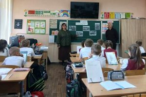 Казак — наставник рассказал о злодеяниях нацистов, которые совершались недалеко от нашей школы в урочище Дубки, концлагере «Красный». Документальные фото тех времен и архивные видеоматериалы продемонстрировали беспощадность оккупантов к обычным людям: женщинам, детям, старикам.