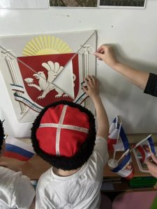 В конце занятия ребята вспомнили пословицы о Родине и сделали книжку-малышку «Принятие Крыма, Тамани и Кубани в состав Российской империи», в которой раскрасили Крымские герб и флаг.