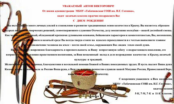 Казачья сотня поздравляет Атамана ЧКВ Антона Сироткина с Днем рождения